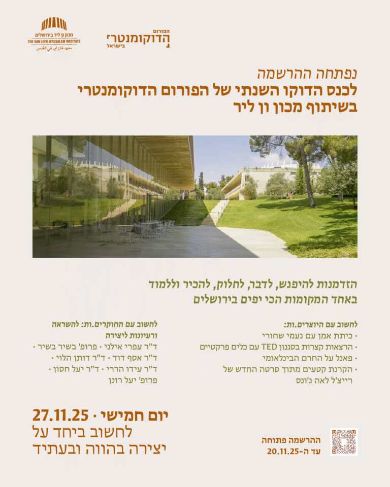 בעקבות המלחמה, סדנת הפיצ'ינג נדחתה עד להודעה חדשה. עקבו אחרינו בניוזלטר וברשתות החברתיות לעידכונים. סדנה ליוצרי דוקו המשלבת הרצאות והתנסות...