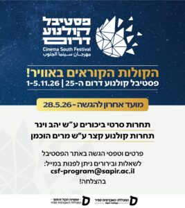 קול קורא של פסטיבל קולנוע דרום להגשת סרטי ביכורים לפרטים נוספים והגשה->